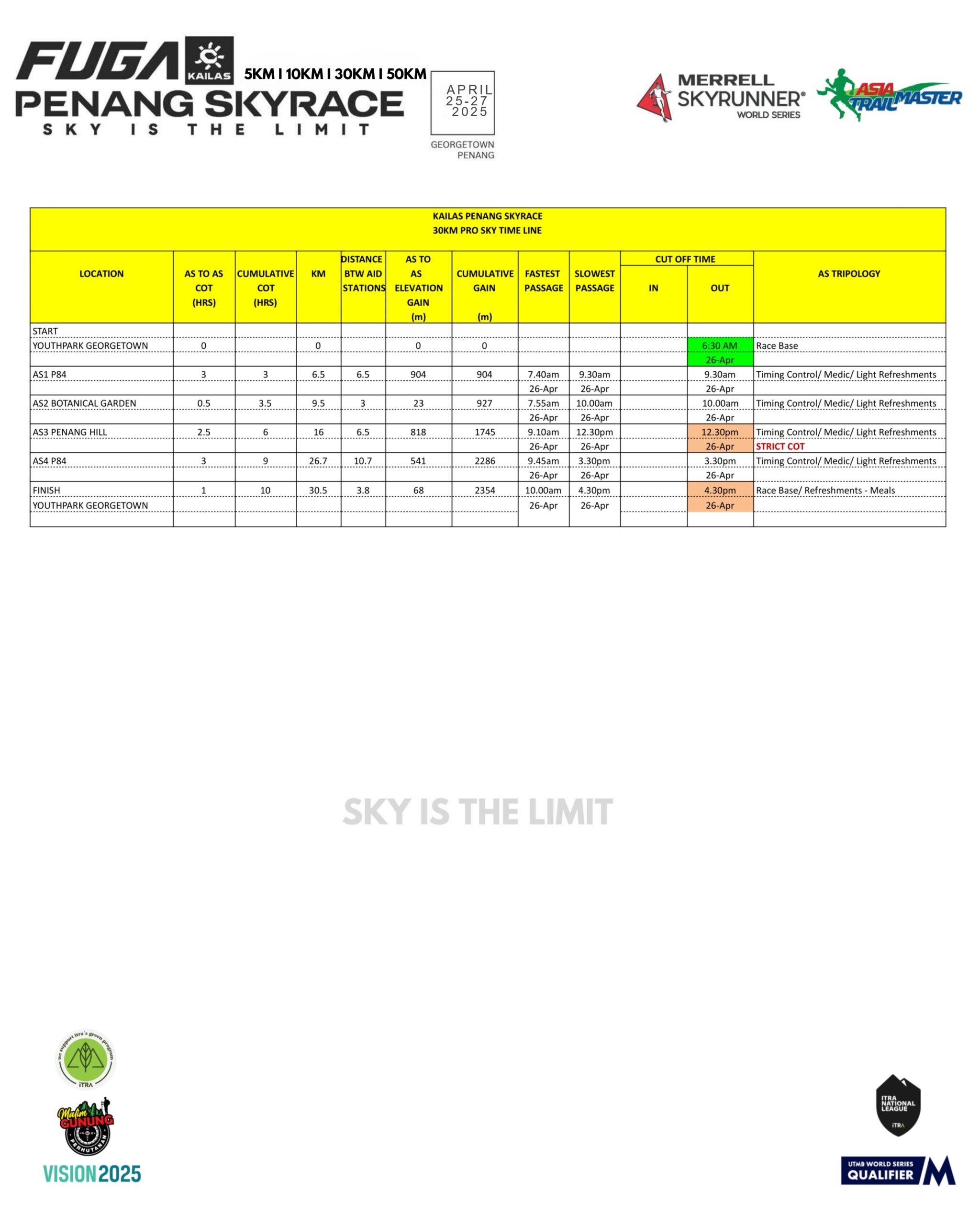 | Cut Off Time (COT) | 07:00PM | Youth Park, Georgetown, Penang (50KM) |